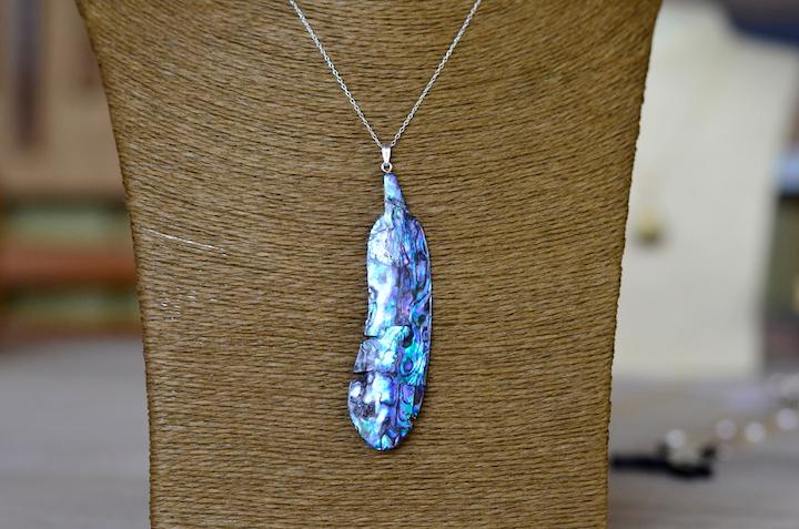 「木地はなんだかわかりますか?」。サイケデリックで妖艶な輝きを放つペンダントを手にした工房ぬりトンの森田哲也さんが言った。持ってみるととっても軽い、そして、羽根のように薄い。答は麻布。奈良時代に中国から伝わった乾漆と呼ばれる技法で作ったものだという。麻の布に漆を塗って、また麻の布を貼って漆を塗って。漆と布で貼り重ねたものだから、軽いし整形も比較的自由にできる。その上にアワビ貝を磨いて真珠のように光る薄片をあしらって完成。こちらも奈良時代に中国から伝えられた螺鈿(らでん)と呼ばれる技法だ。何も知らない状態でこのペンダントトップを目にしたら、奈良時代からの技法が使われているとは想像できなかったかもしれない。