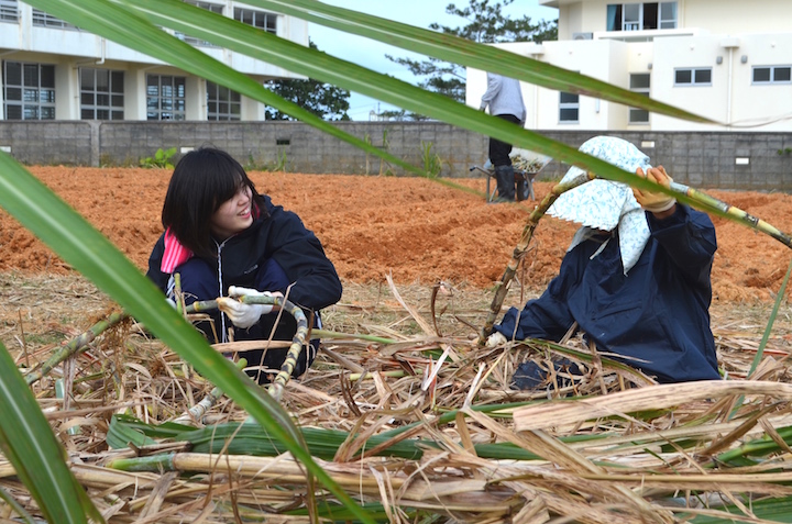 サトウキビ畑で、苗の植え付けを手伝う女子大生が一緒に農作業をしている人生の大先輩に素朴な質問を投げかけた。