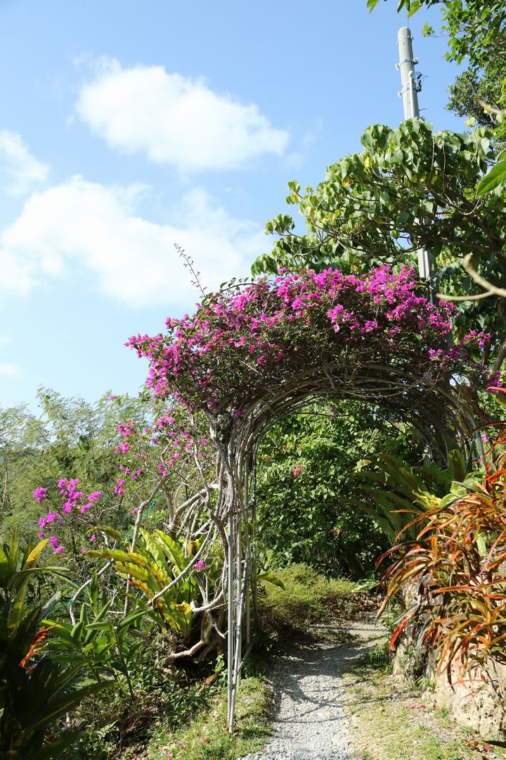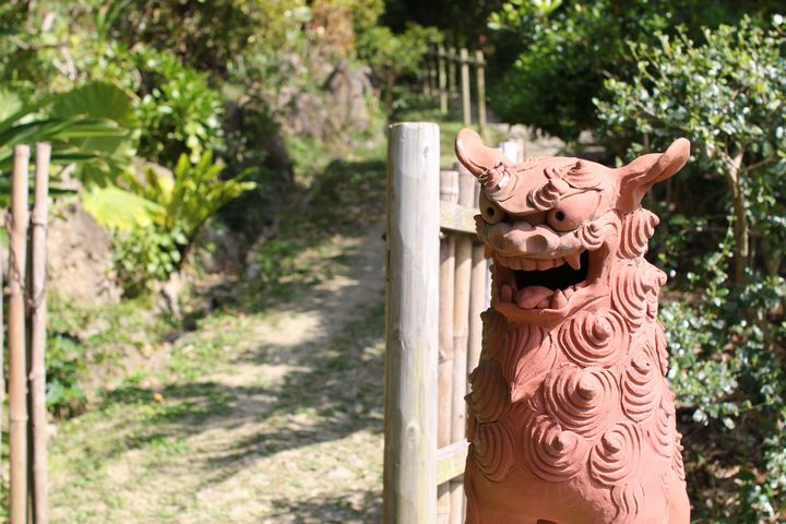 庭といっても、平坦なものではありません。シーサーが迎える入口からゆっくり坂道をのぼり、絶景の海を望む展望台まで続く、まるで森を散策するかのような自然庭園。