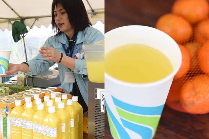 祭り会場では、勝山のシークヮーサージュースが1杯100円で飲めたり、