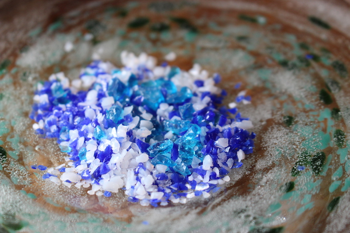 次に25種類ある大小あるカラフルなガラス片を2~3種類組み合わせ、