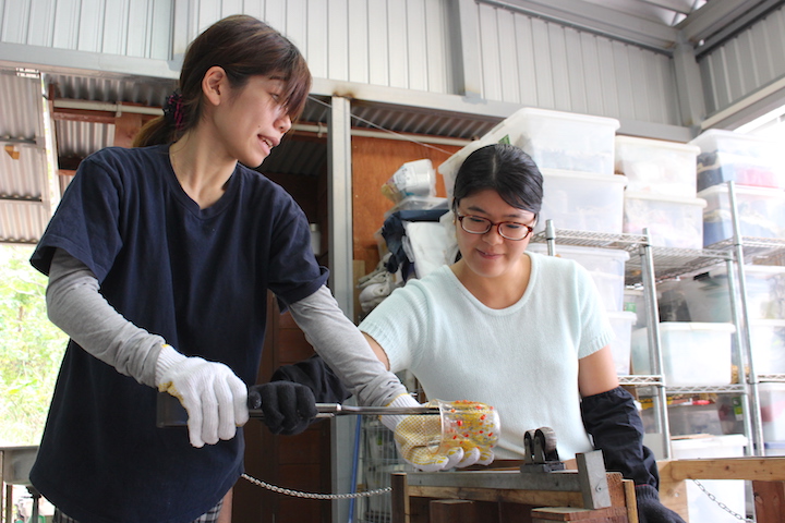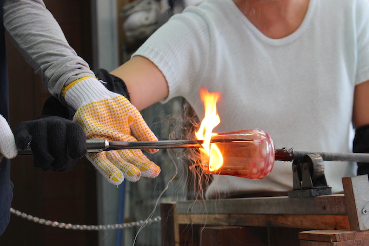 グラスアート藍で吹きグラス体験