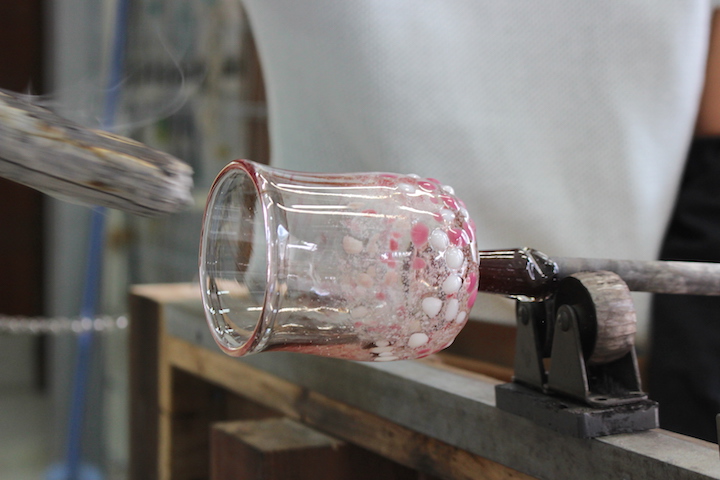 吹く作業が終わると、次は飲み口になる部分を作っていきます。