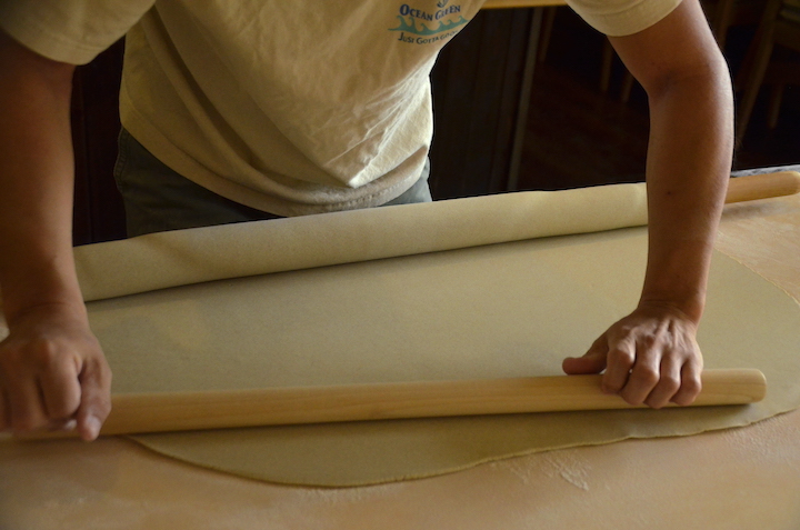 収穫の手伝いをしているうちに楽しさを感じ始め、宮古島で蕎麦農家をやってみたいと思うまでになったのだとか。栽培して玄蕎麦を出荷するだけでは生計を立てるは難しいだろう、どうせやるなら、玄蕎麦から蕎麦粉、蕎麦粉から麺にして直接お客さんに味わってもらいたいと決めてからは、関西から関東へと、話題の蕎麦屋を食べ歩き、独学で蕎麦打ちを学び始めた。