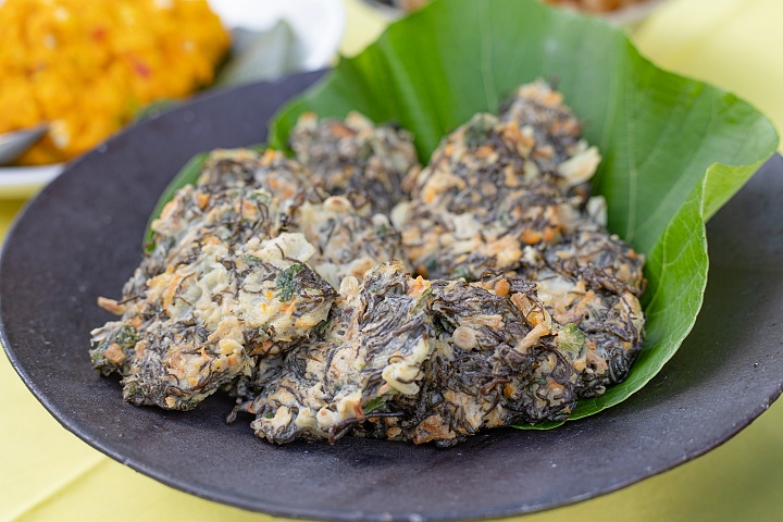 千切りイリチー(千切り大根の炒め煮)、うむくじ天ぷら(紅芋と芋くずで作られる天ぷら)ビーツで炊いたご飯を使った巻き寿司、ゆうなの葉に包んで蒸された琉球ちまき、肉まん、三月菓子(旧暦の3月3日に作られる伝統菓子)などがテーブルに並びました。