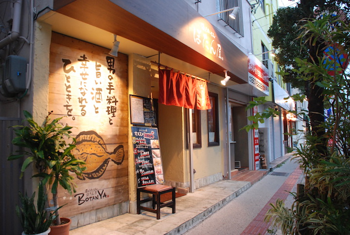 県庁前〜美栄橋(みえばし)間のゆいレールと国際通りにはさまれたエリアは、良い飲み屋が密集した飲んべえのオアシス。またの名を「久茂地(くもじ)」といいます。今夜の宴に選んだ「ぼたん屋」さんは、この久茂地の一等地に位置する、人生経験豊富な大将がつくる”男の料理”居酒屋です。