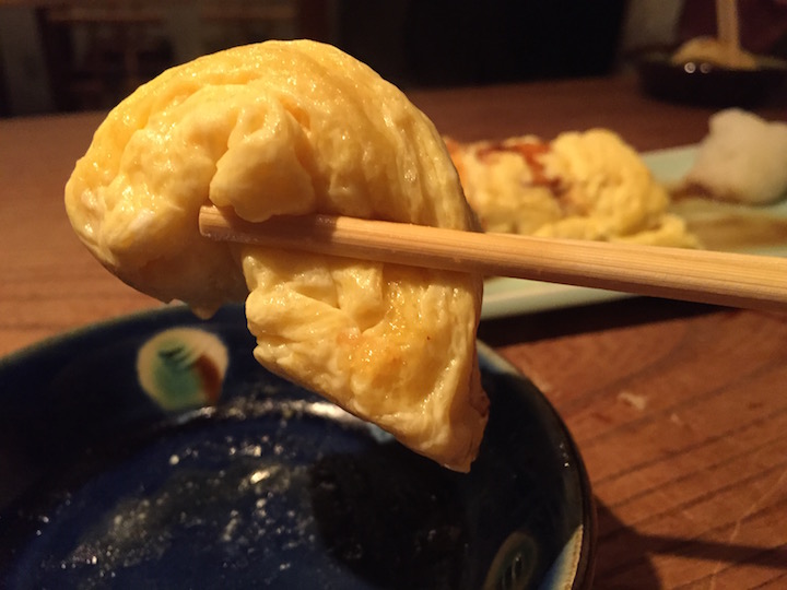 出汁が滴り落ちそうなほどジューシーな名物出汁巻き卵