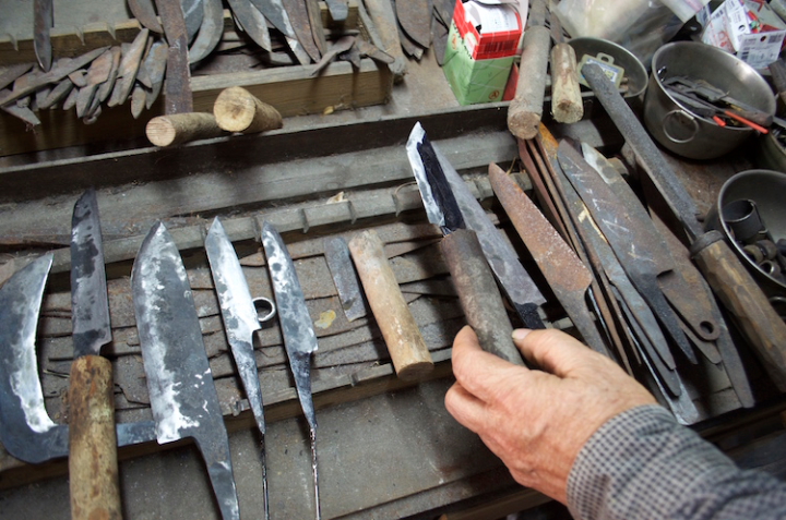 沖縄中の刃物だけでなく、県外の刃物を見て歩き、鍛冶屋を訪ね歩いた。