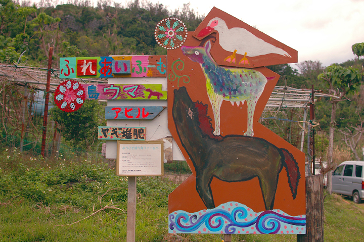分かれ道を曲がり細い一本道の先に清ら海(ちゅらうみ)ファームがあります。