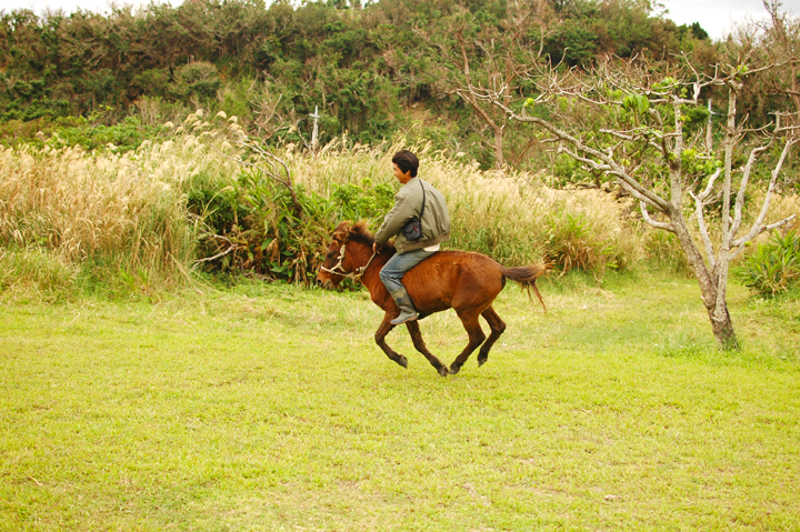 島に住む鎌田さんと相棒、「ラッキー」(沖縄で数少ない在来種よなぐに馬)が迎えてくれます。