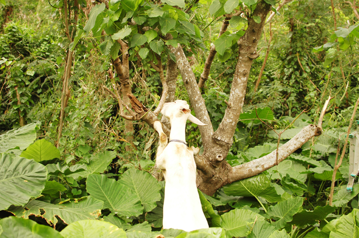 ヤギと一緒に浜比嘉島の大自然を満喫しながら、