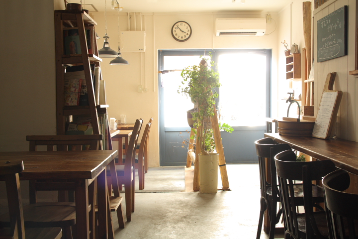 ふたりでつくったという内装は、木を基本としていてとても暖かみがある。