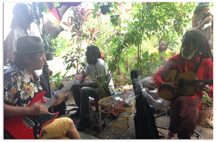 島袋優×チナスミス。遠く海を超えて、琉球とジャマイカの一流ミュージシャンによるセッション! この時の様子はIVANのコラム(http://rockers-channel.com/ivan-20140619-178)で読めます。写真提供 : IVAN