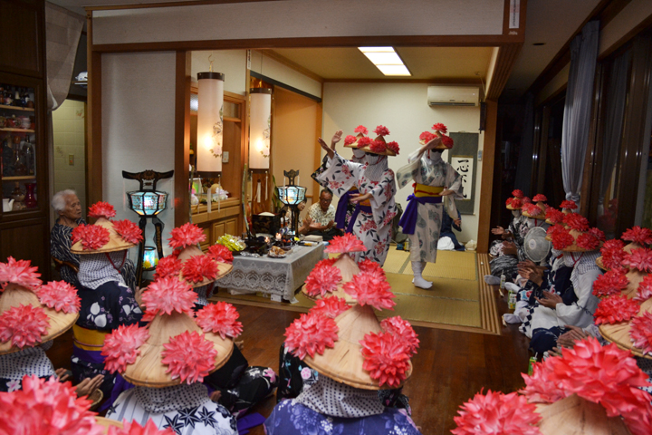 仏壇の前で唄い踊り、賑やかに先祖供養をします。