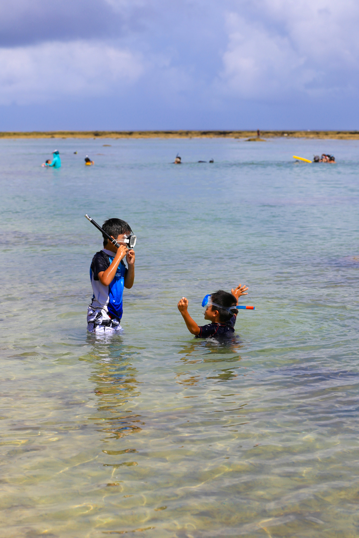 リーフ内の浅瀬なら子どもも安心してシュノーケルを楽しめると、