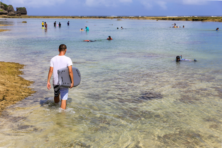 シーズン中はファミリー層で大賑わい(但し、ゴツゴツしたリーフは先が尖った岩肌に覆われています。