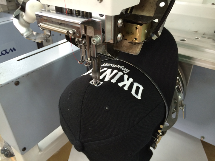 ボディはアメリカに発注、刺繍は沖縄で制作しています。刺繍部分のフォントは、筆記体とアーチロゴ、ISLANDERSの3つのタイプ。ていねいに行なわれる刺繍作業は2週間かかるそう。