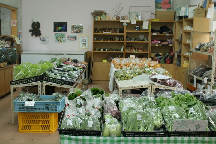 店内には野菜のほかに、黒糖やジャム、もずく、工芸品など、