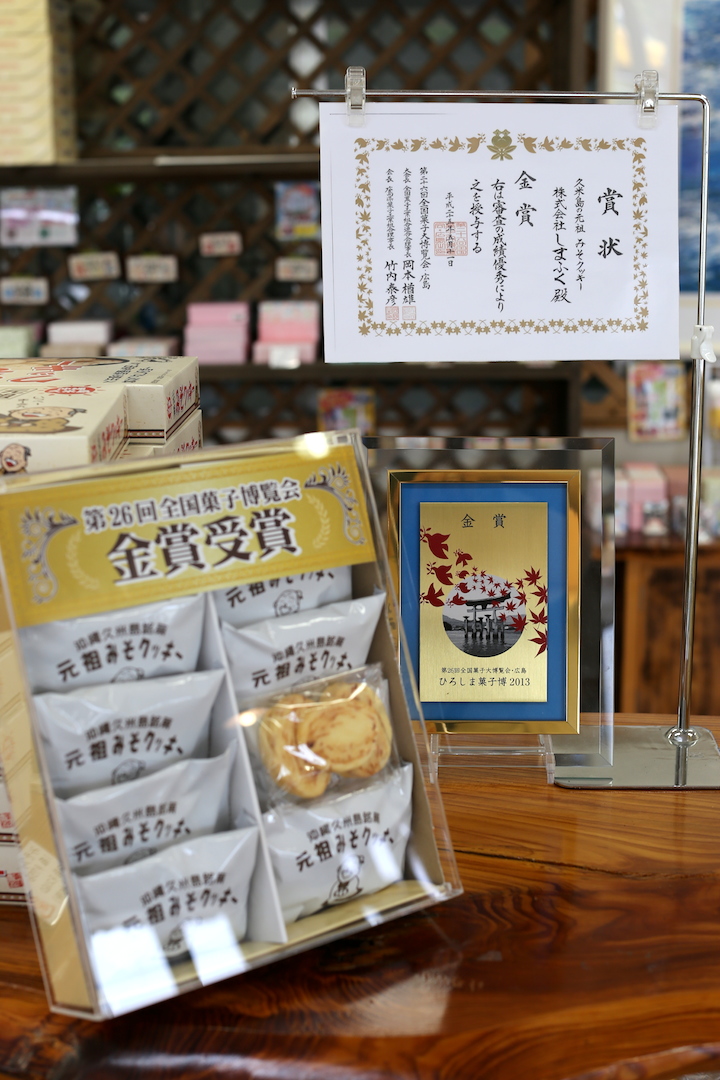看板商品である「元祖みそクッキー」は、「第26回全国菓子大博覧会・広島」金賞を始め