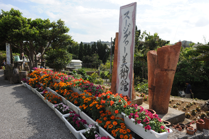 また公民館の裏手の多目的広場や、集落のいたるところに大きな素焼きのオブジェがあるのは、県立芸大と『彫刻カジマヤー計画』と称する取組みを行い、10年間にわたって合計約100体のアートを毎年生み出してきたのです。