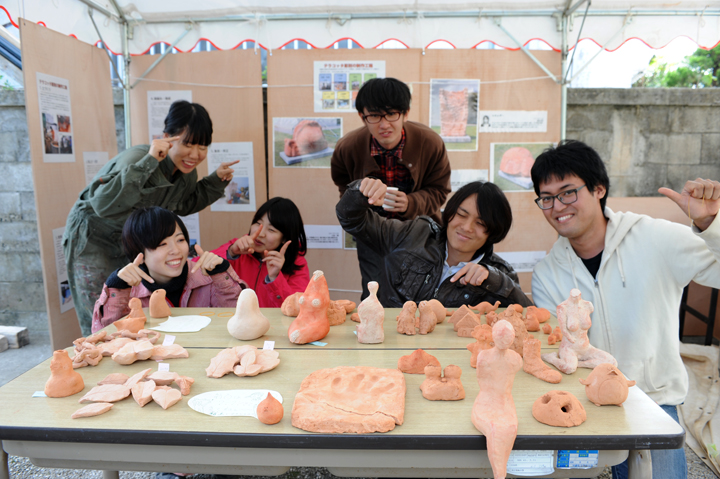 今年の『スージグヮー週末美術館』では、これまで県立芸大の学生さんたちがどのように制作してきたのかパネル展示をしたり、ミニチュアの彫刻で素焼き体験教室を開催。