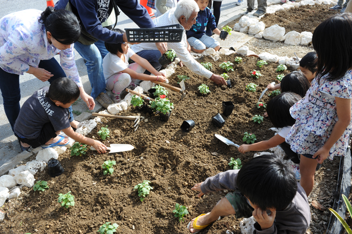 そのほかにも新しい試みとして、地域の子供たちと石積みワークショップを行い、花壇作りをしました。