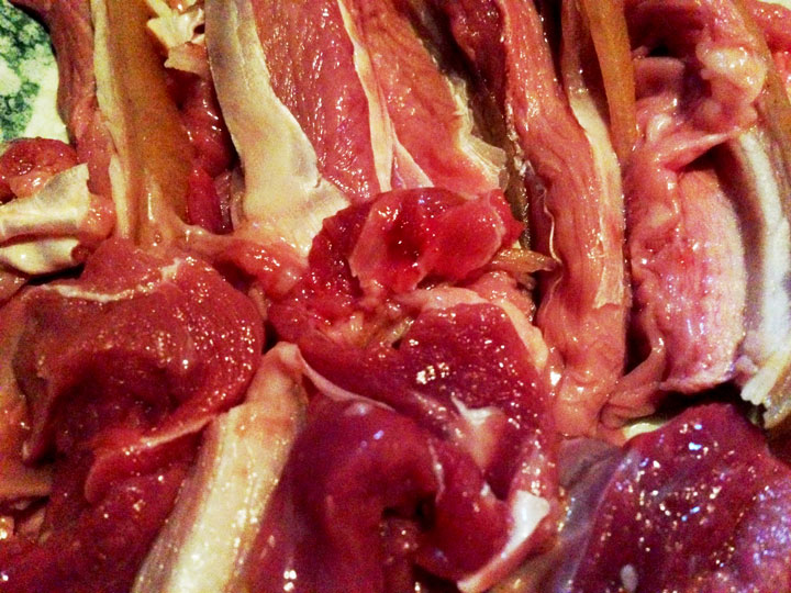 特においしいのは、ピンクのお肉におまけのようにひっついている皮の部分。