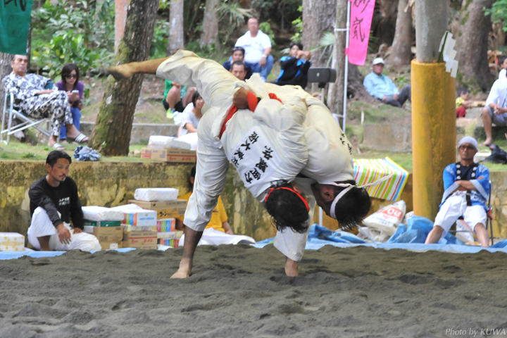 力士たち(島の青年たち)の闘志が会場を沸かせ、とても見応えがある取組みが名物となっています。