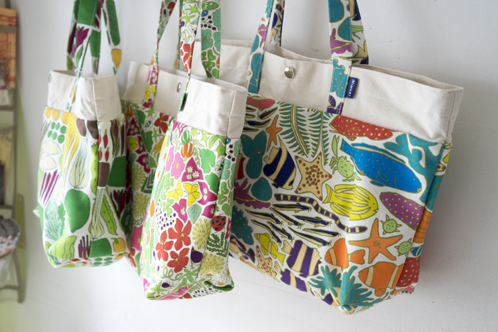 テキスタイルデザイナーのMIMURIさんのトートバッグ。