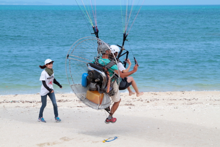 砂浜を数歩軽く走りだすと、体がフワり…。宙に浮き上がるこの瞬間、たまりません!