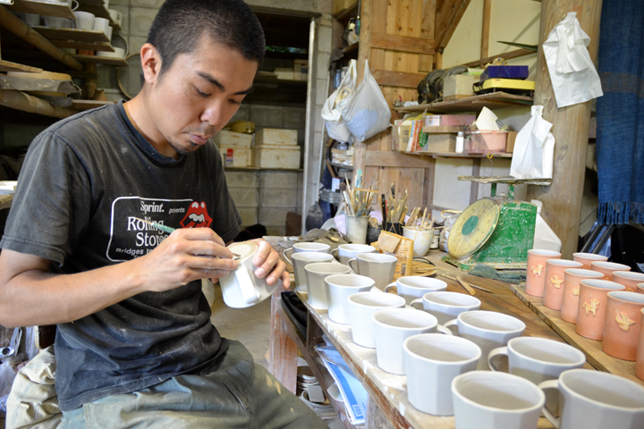 息子の晋平さんの家族3人で器をつくる毎日です。