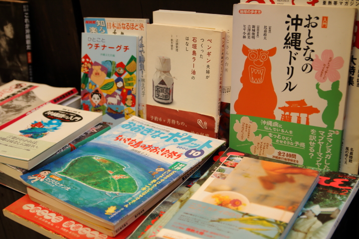 店頭にはさまざまなジャンルの沖縄の本が並びます。