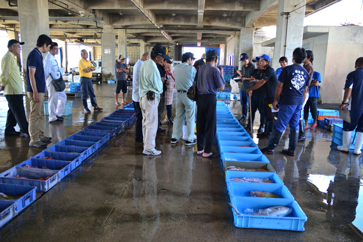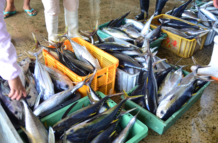 石垣島の新栄町にある八重山漁協では、毎朝9時からセリが行われています。規模は小さいですが、威勢のいい声が響きます。