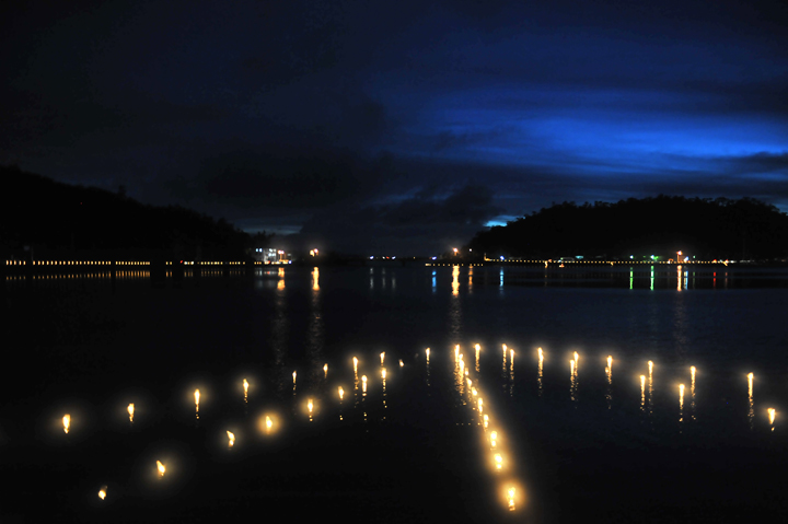 塩屋湾外周と湾内にキャンドルが灯され、