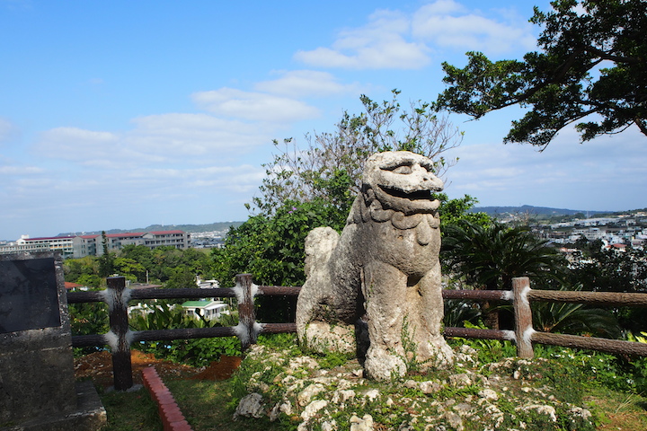 この愛らしい石ジーシ(石獅子)は南城市知念(ちねん)で遭遇。集落の入り口や高台に、魔除けや火難を防ぐ守り神として設置されてきたもの。県内各地でもまだまだ見ることができますので、ぜひ見つけてくださいネ。