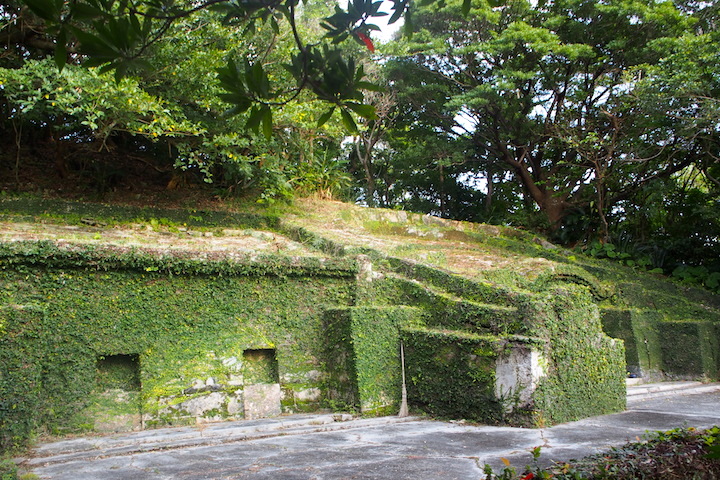 そして、個人的にいちばん美しいと自負している沖縄の石造物がこちら! 私の実家の門中墓(もんちゅうばか=血縁のある一族が入る共同墓)です。今から190年以上も前に造られたものなんですヨ。南城市佐敷(なんじょうしさしき)の田舎にありますが、このお墓が造られた当時、農村ではまだ士族のような立派なお墓を造ることは許されてはいませんでした。そのため、琉球王府から検査が入り、墓を壊すように命じられたそうです。しかし、わが門中の人々は、自分たちが“知念按司(ちねんあじ)=上級士族”の子孫であることを主張し、無事、検査を通り抜けたのだと言い伝えられています。威風堂々たるこの佇まい、本土から来た友人を案内したら、“古墳みたいで美しい! 今回の沖縄で見たものの中でいちばんよかった”と感動してくれました(笑)。沖縄独特のこの亀甲墓は、市街地や郊外問わず、割と頻繁に目にすることができます。