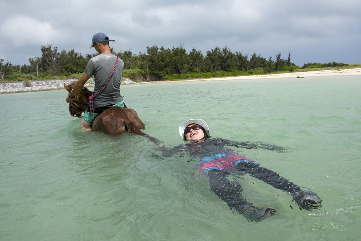 「今、北海道に住んでいて近所にも馬がいるけど、馬って人を嫌がるイメージがあったのですが、久米島では触れ合うことができ、馬の温かみとか、人懐っこさを楽しむことができたのが良かったですね」。