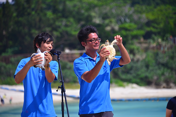 沖縄観光で人気スポット「沖縄美ら海水族館」のある海洋博公園で、ウミガメ放流会が行われました。その様子をご紹介します!