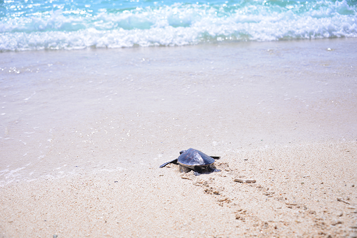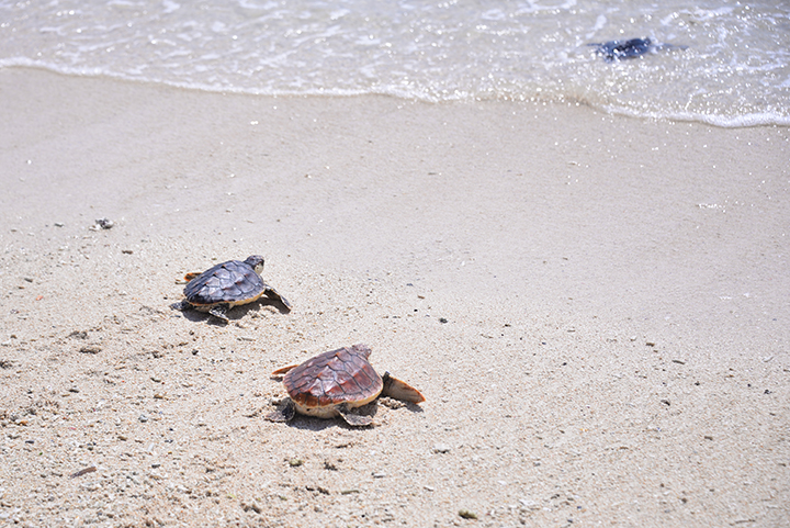 ウミガメを放流する海洋博公園内のエメラルドビーチは、とても美しく海水浴なども楽しむことができるビーチでもあるのですが、実際にウミガメが産卵のためにやってくるのだそう。