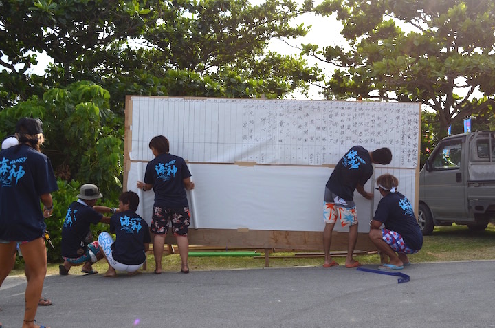 今回お邪魔したのは地域ぐるみのイベントとして愛されている布干堂(ぬのほしどう)の海神祭。漁師だけではなく、サーファー、ダイビングショップや飲食店のスタッフ、高校生などいろんなチームが参加します。最近では漁師よりもダイビングショップのスタッフの参加数の方が多いのだとか。内地からの移住者の参加者も年々増えてるみたいです。