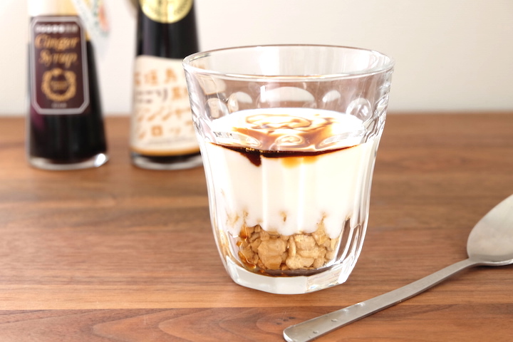 黒糖ジンジャーシロップのつくり手であるゆきさんは、熟練の使い手でもあります。「お味噌汁に肉じゃが、炒め物、豚の生姜焼きやカレーなどに一滴たらすと、コクが出ます。生姜を使う料理では、生姜の代わりに使えば生姜を擦る手間が省けて家事の時短になりますよ」。ヨーグルトにたらしたり、紅茶にたらしてミルクを加え、チャイ風にしていただくのもオススメとのこと。