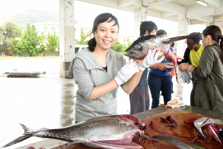 朝市のあとは、この日は『海人料理体験』が開催され、魚のさばきかたや料理を教えてもらえるとのことで、遠くからは沖縄本島中部のうるま市からも参加がありました。