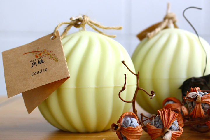 また、月桃の実をイメージして、作られた月桃キャンドルは、月桃の葉をソイワックスというキャンドルの原料に煮出した自然な色合いが魅力です。