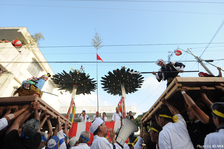 綱引き前の道ジュネー(芸を披露しながら地域を練り歩くこと)や、
