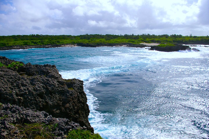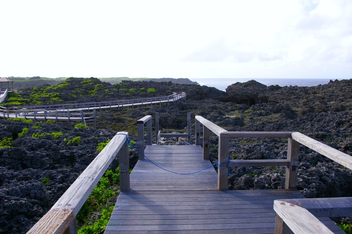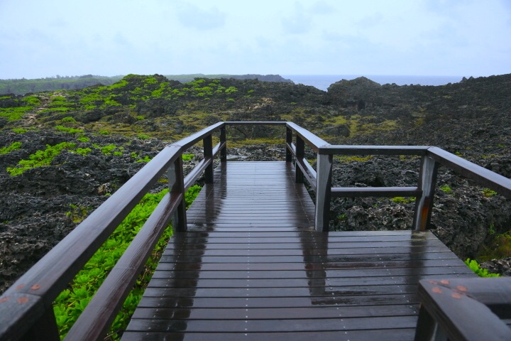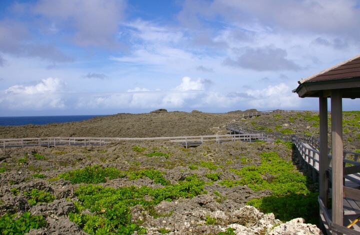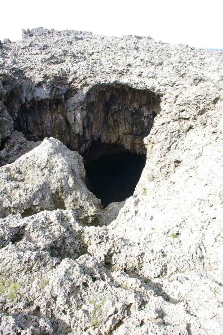 ゴツイ琉球石灰岩が広がる高台に、ぽっかりと口を開く大きな2つの穴が、