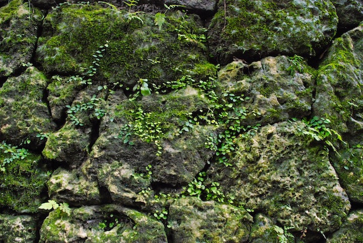 それらを覆う苔や小植物の緑がお互いを引き立て合って美しいのは、