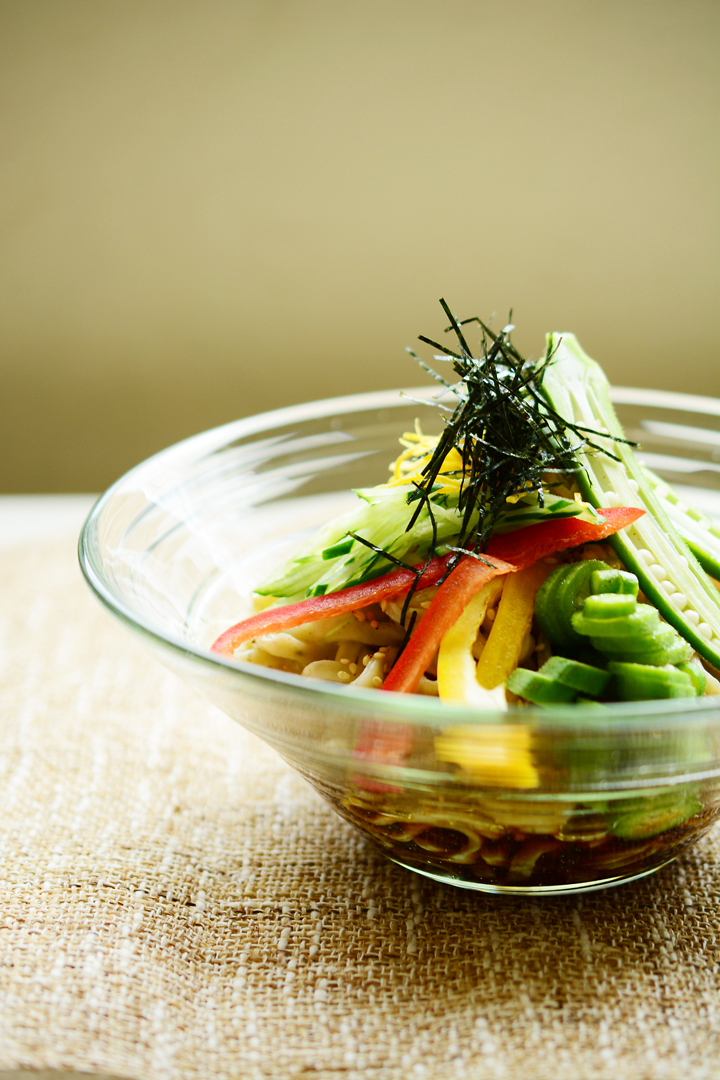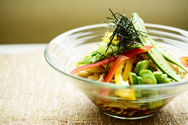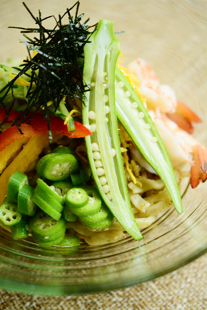 バテ気味な暑い夏に、喉ごしのよいオクラ麺でスタミナをつけたいですね。