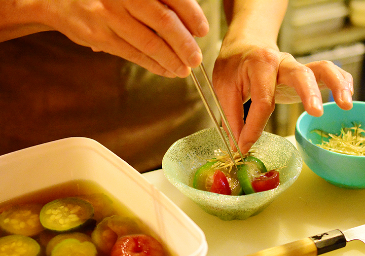 少し濃いめのだし汁に漬けて、冷蔵庫で一晩寝かしておきます。