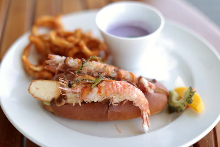 衣揚げで味わえる「久米島 車海老ドッグ」(1,300円税込)は、プリプリ食感が何とも贅沢。