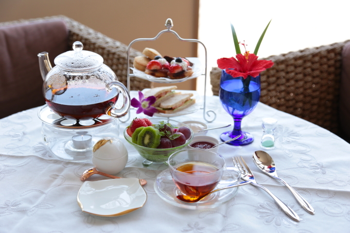 また、プールで目一杯泳いだ後は、のんびりアフタヌーンティーも素敵です。